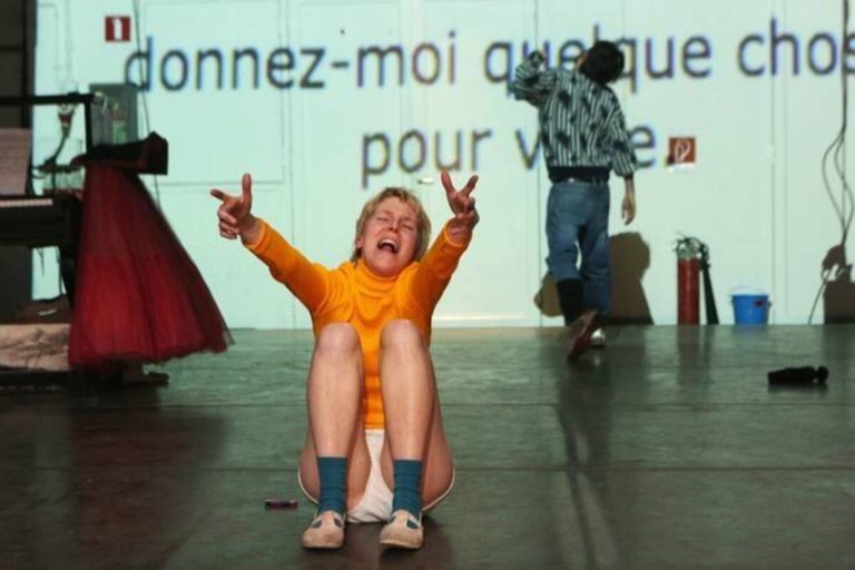 Du parc, il n’y avait qu’un pas vers La Balsamine, où s’est déroulée une autre performance de rue, The Pocket History of Polish Trauma [L’histoire de poche du traumatisme polonais], Marta Bosowska a employé des comptines et chansons polonaises ainsi qu’un trampoline pour démontrer pourquoi les Polonais continuent de souffrir d’un traumatisme intergénérationnel. Enfants, on leur proposait une collation, une activité divertissante et une dose malsaine d’idéologie par le biais de comptines et chansons. Le trampoline était accessible à ceux et celles disposés à chanter la chanson polonaise.