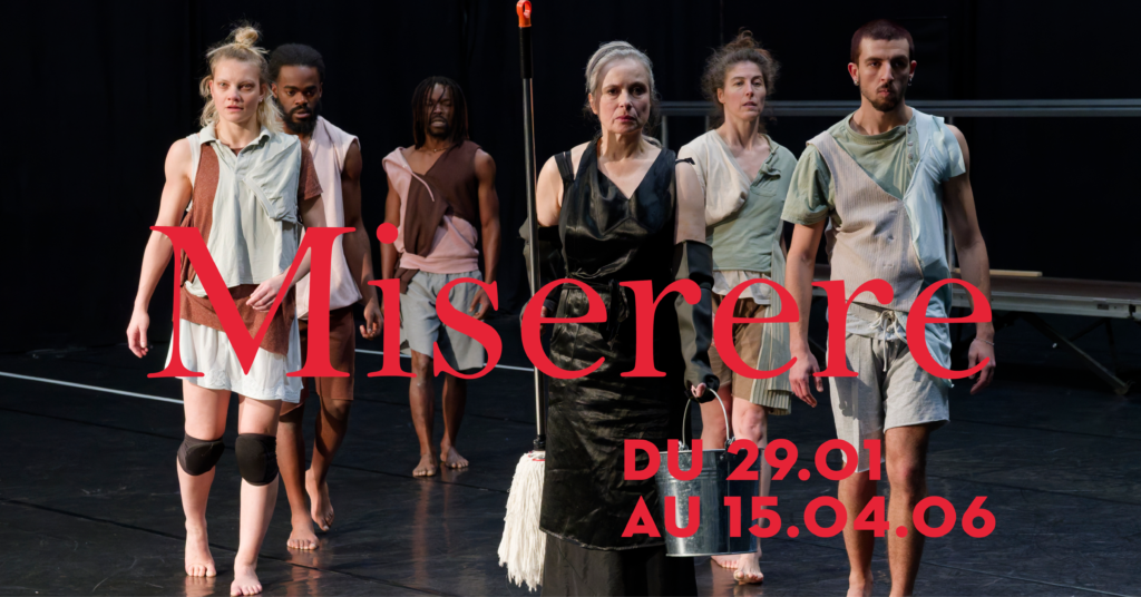 Créé fin janvier au Palais des Beaux-Arts de Charleroi, Miserere est prochainement à voir au Central de La Louvière (2-3/4), au Théâtre de Namur (9-11/4) et au KVS à Bruxelles en collaboration avec la Monnaie (14-15/4).